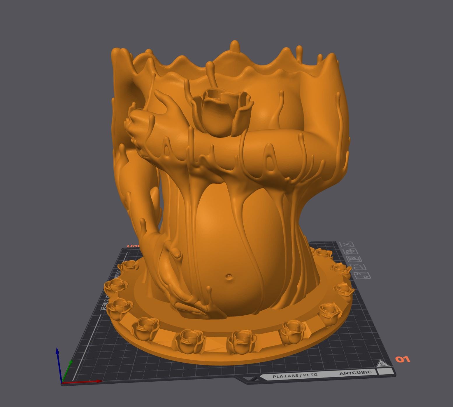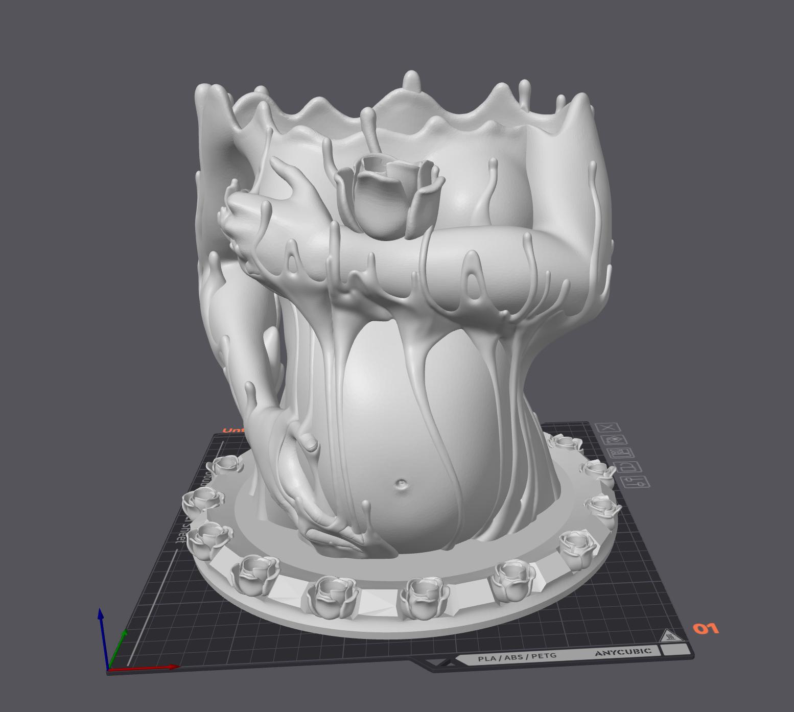 This sculptural vase, meticulously crafted using advanced 3D printing technology in a process that takes over 20 hours, captures the essence of femininity and creation. Inspired by the silhouette of a pregnant woman, it symbolizes fertility and the continuity of life. Made from high-quality materials, with elegant lines and intricate details, the vase seamlessly blends contemporary art with modern technology, offering a unique and refined decorative piece. A true visual statement, perfect for any sophisticated interior, this vase conveys deep meaning and exceptional aesthetic value.