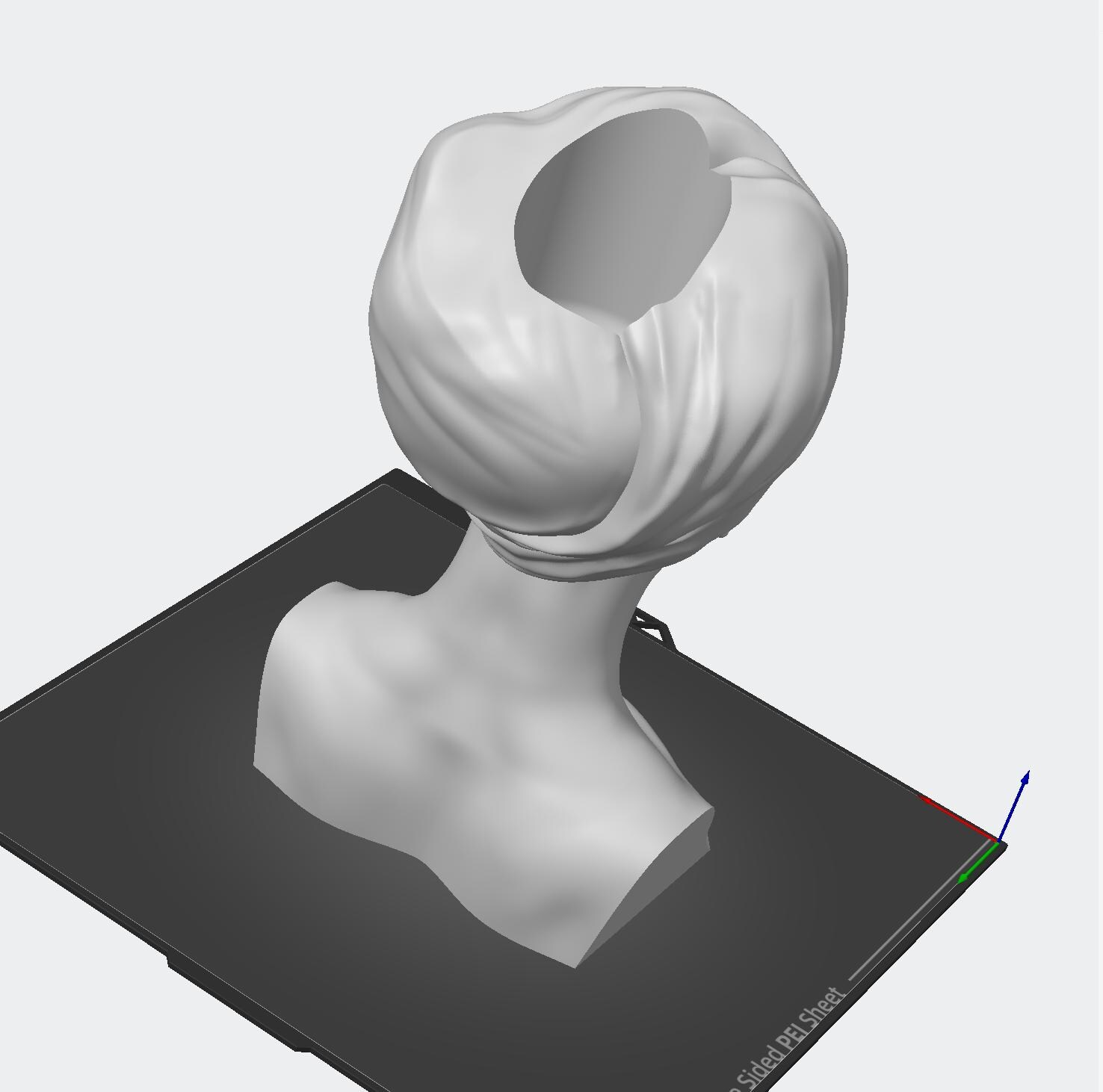 The "Diana" bust vase showcases the perfect fusion of cutting-edge 3D printing technology and artistic elegance. Crafted with meticulous attention to detail over a 15-hour process, every feature, from the refined facial expressions to the graceful turban, is rendered with precision. The discreet opening at the top is designed for floral arrangements, combining functionality with sophisticated decor. Ideal for interiors seeking a balance of modern innovation and classical beauty, this unique piece adds a distinct touch of elegance to any space.