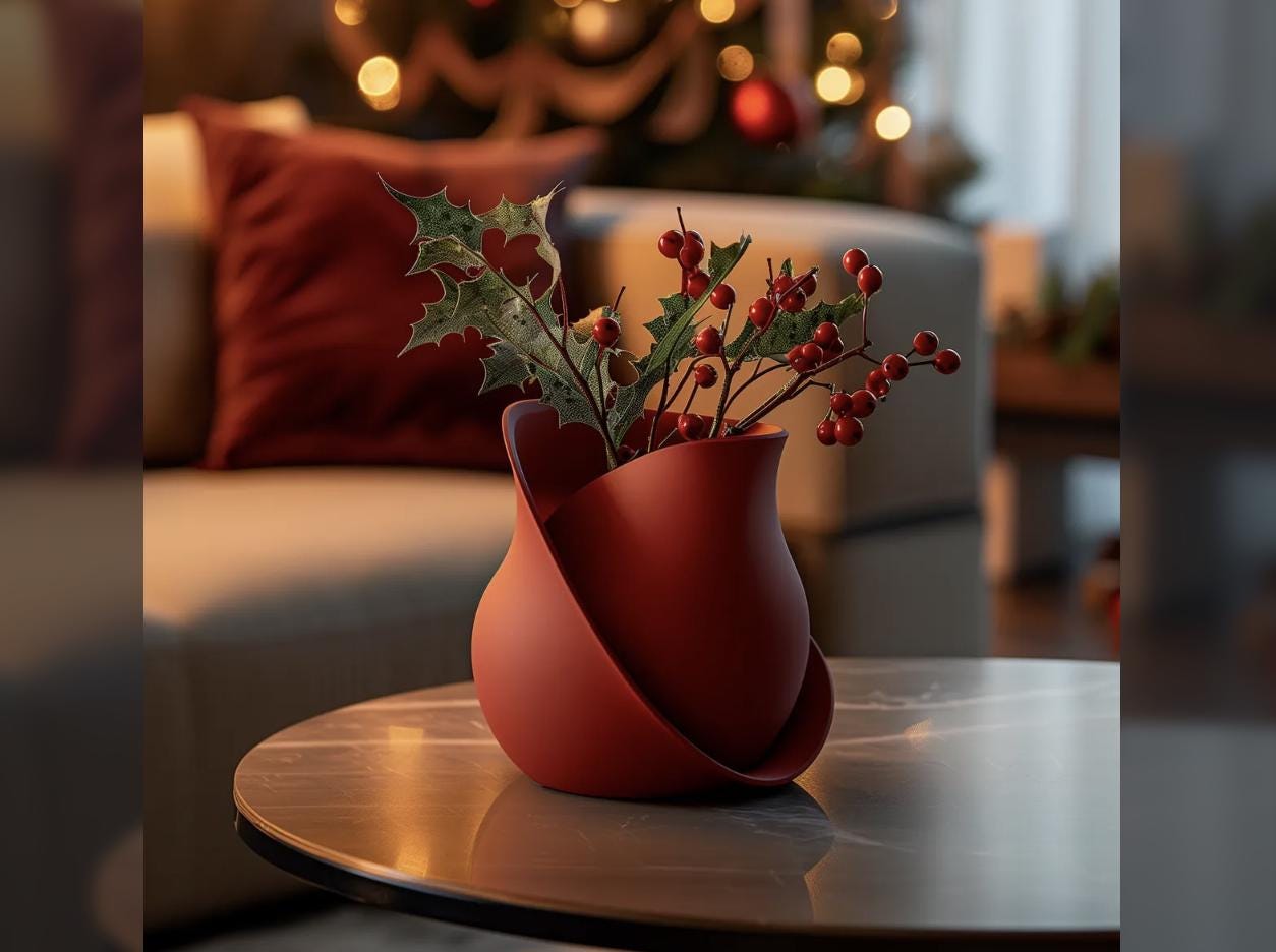 This rose-shaped vase, created through 3D printing, not only adds beauty to your decor but also makes a wonderful gift for loved ones, bringing a smile to their faces during this magical time of year!