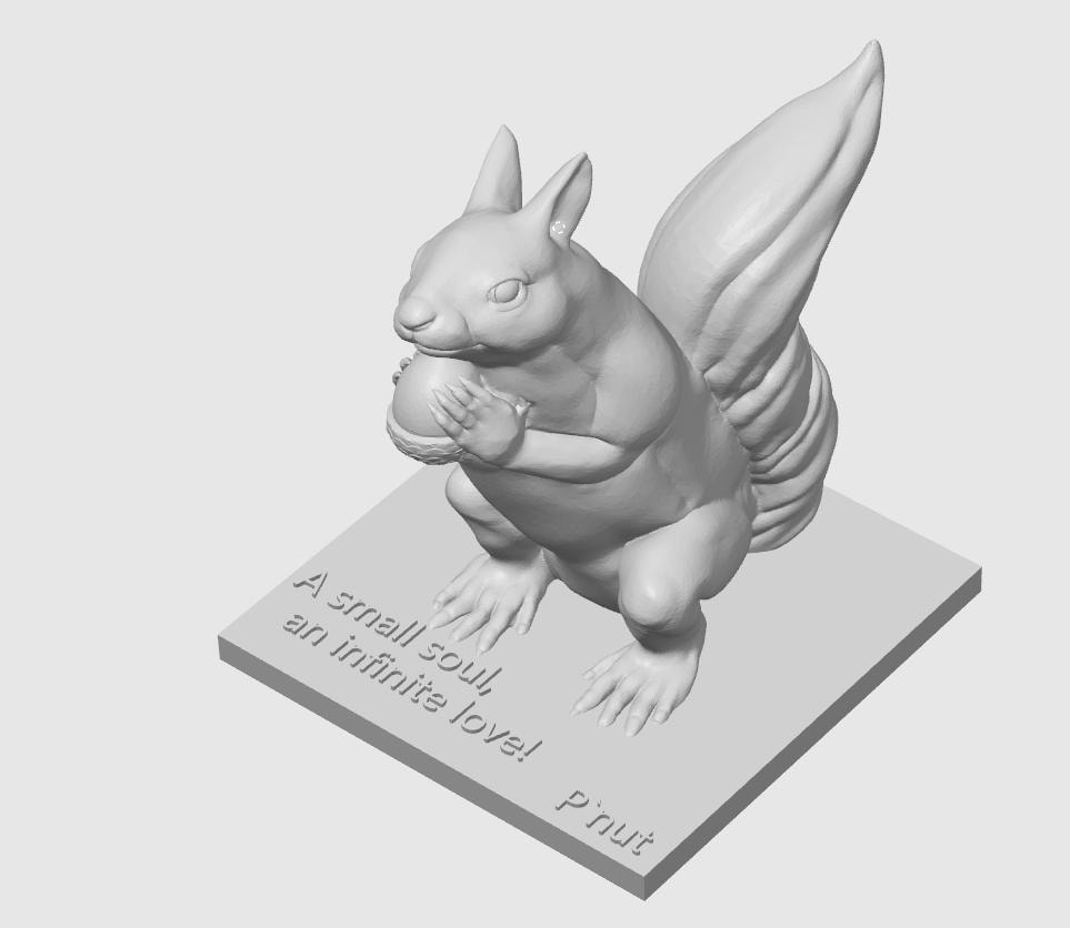 This 3D sculpture is a heartfelt tribute to P’nut, a beloved squirrel who was taken too soon. Crafted with care, this piece captures her playful spirit and the love she brought to those who cared for her. It can be customized with a personal message, keeping her memory alive and showing support and love for her.