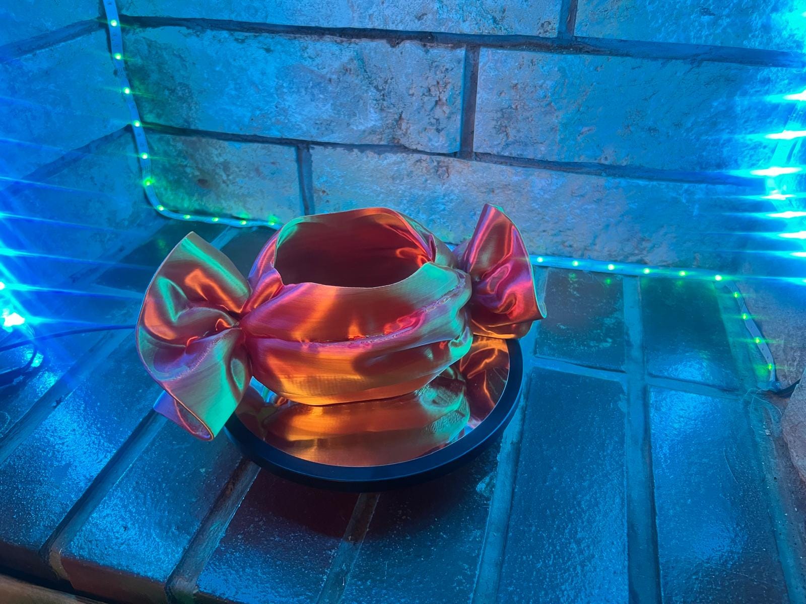 Add a sweet touch to your decor with this unique candy wrapper-shaped vase/planter! 3D printed using biodegradable PLA, it combines innovative design with sustainability for a piece that stands out in any space.