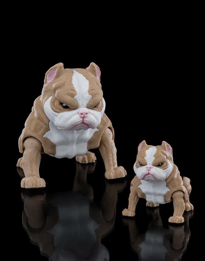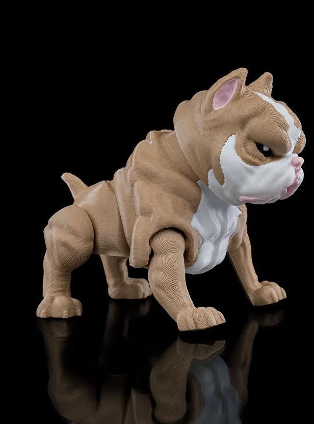 Enhance your collection or surprise a loved one with this articulated American Bully dog model, crafted through 3D printing. Featuring a detailed design and fully articulated joints, this piece is perfect for dog lovers, modern design enthusiasts, or collectors of unique items.