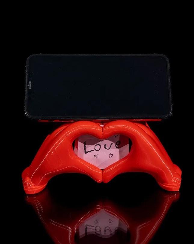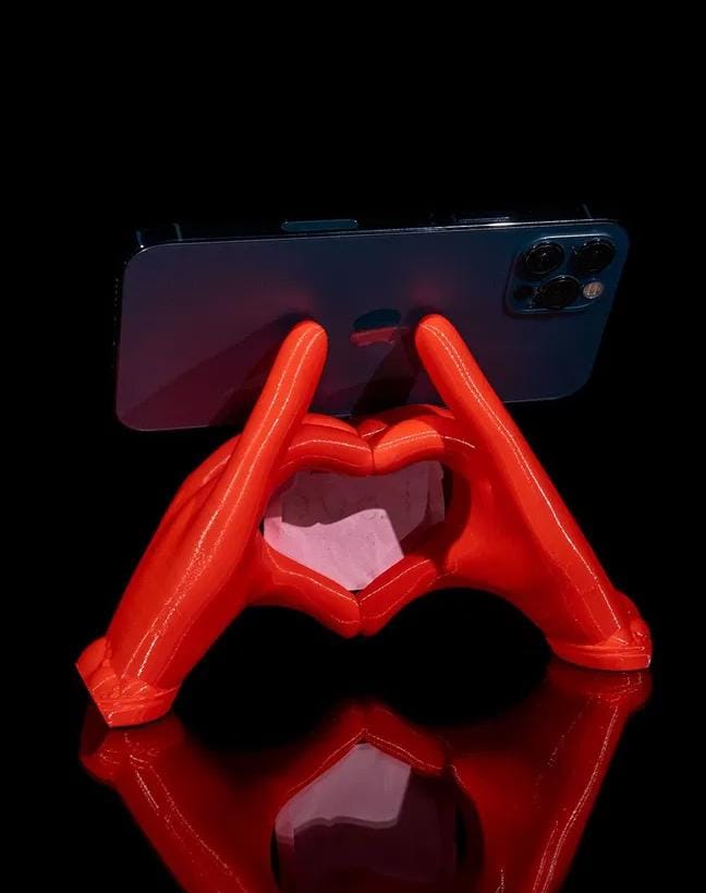 The Heart Hands Phone Holder is a unique and charming way to keep your phone safe and stylish. Crafted with precision, this 3D printed stand features two hands forming a heart shape, offering a perfect blend of love and functionality. Ideal for holding your phone in landscape or portrait mode, it adds a personal touch to any desk, nightstand, or workspace. Whether you're looking for a functional phone holder or a decorative piece to express your affection, this heart-shaped design is a perfect choice for any occasion.