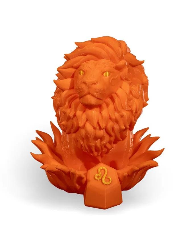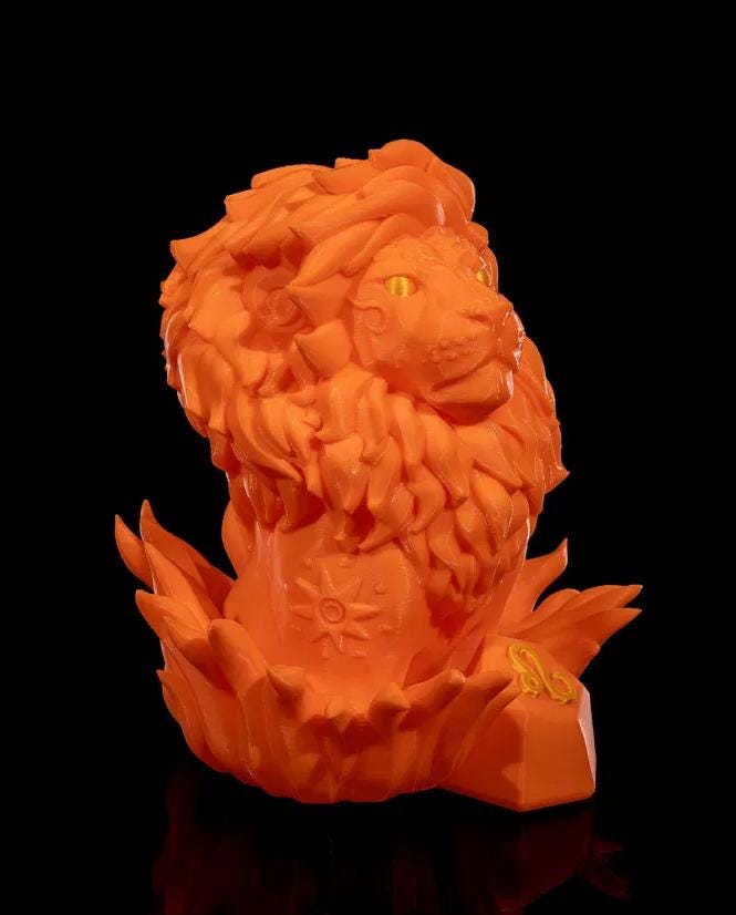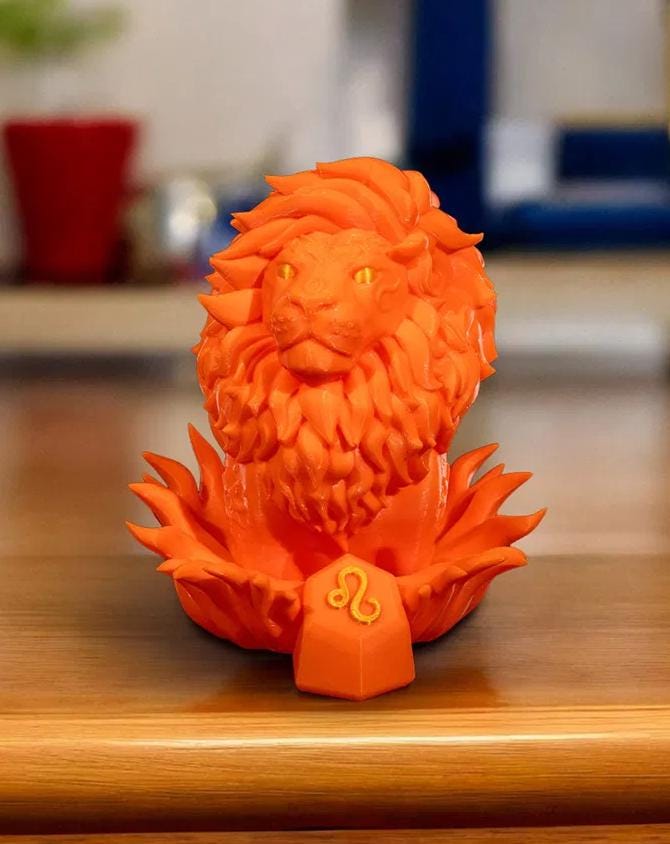 This magnificent 3D-printed Leo Zodiac sculpture captures the strength, courage, and regal presence of the lion, the symbol of Leo. Expertly crafted, this piece beautifully represents the fire sign's bold, confident, and passionate traits. Perfect for astrology lovers, it makes a stunning home décor accent, a meaningful zodiac-themed gift, or an inspiring addition to any space. Celebrate the pride and energy of Leo with this elegant work of art.